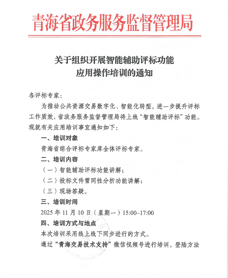 关于组织开展智能辅助评标功能应用操作培训的通知