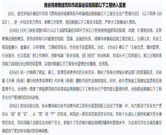 我省将房屋建筑和市政基础设施限额以下工程纳入监管